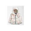 Reversible, lightweight, hooded jacket insulated with 700-fill-power 100% Recycled Down (duck and goose down reclaimed from down products) features a solid color on one side and print on the other.